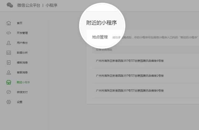 02 — 小程序直接添加地点展示在“附近” 小程序后台新增附近的小程序功能,申请开通后支持添加地点。哪有做小程序添加地点后即可展示在附近的小程序。