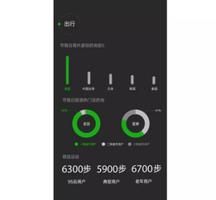 【老年用户更爱到处走】 从微信运动中看出,95后日走6300步,典型用户日走5900步,而老年用户日走6700步。而一线城市的用户,比起二、三线城市用户更爱出行。