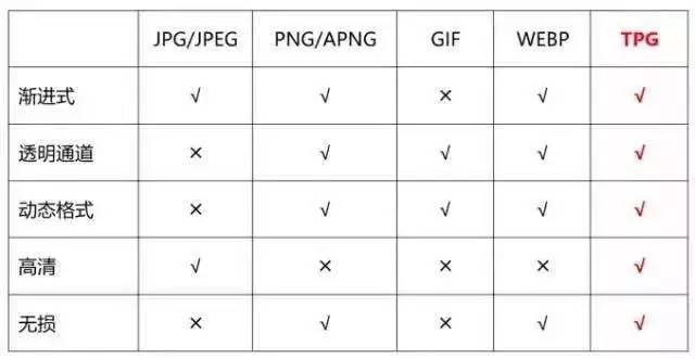 据腾讯音视频实验室提供的测试数据,TPG 与 JPG/JPEG、PNG、GIF 等常见图片格式在同等质量图片的前提下对比,TPG 图片的体积比 PNG 小50%以上,比 G竞价推广策划IF 小90%以上,比 JPG/JPEG 小40%以上。