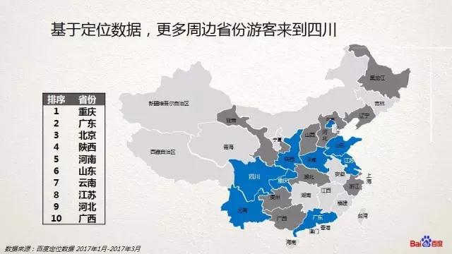 位置数据:下图是关注四川的人群主要来自的省份,这些表明人群的长期所在位置。
