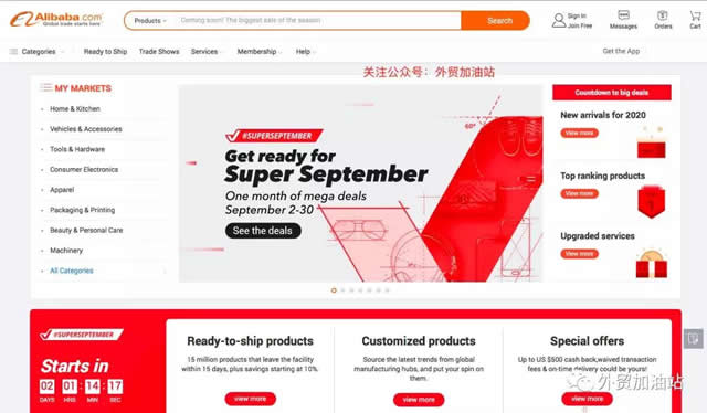 我国目前在跨境电子商务领域的基本业务模式有两种:第一种是B2B模式,第二种是B2C模式。其中第一种模式:B2B模式,简单来说就是企业与企业之间的贸易模式;而第二种模式:B2C模式,就是企业与个人(消费者)之间的贸易模式。 下面我们就来简单的介绍一下B2B模式:B2B(Business-to-Business)就是说商家和商家(企业与企业)之间通过网络或者是专用线路进行相关数据信息的传递,从而进行商业活动的模式。在这种模式之下,商家所进行传递的信息主要自身产品的广告和信息展示为主要内容,通关流程与成交结果都是在线下进行,其本质仍然算是传统的贸易模式,在海关被纳为一般贸易进行统计。 目前国内B2B出口跨境电商平台(排名不分先后): 一、阿里巴巴 官网:https://www.alibaba.com/ Alibaba国际站是阿里巴巴旗下的外贸出口B2B平台,alibaba.com的官网月均流量超过1亿。有超过30万的付费会员,1200万的注册买家,2开发网站的900万的注册用户,是全国乃至全球最大的B2B电子商务网站。也是中国许多出口跨境电商卖家将产品卖往全球的据点。