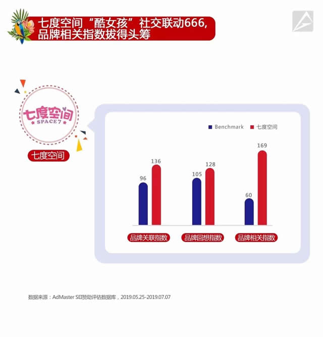 AdMaster SEI数据显示,七度空间高达169的品牌相关指数大幅高出60的行业均值,可见节目为品牌主带来有效的品牌价值增量。