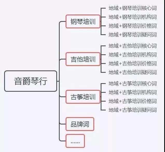 2.账户结构 琴行有很多培训课程,所以根据不同的课程,将网站建设 沈阳账户计划细分好,再将每个计划的关键词词性进一步细分为单元,便于数据采集以及分析,更好地管理后台和优化账户。