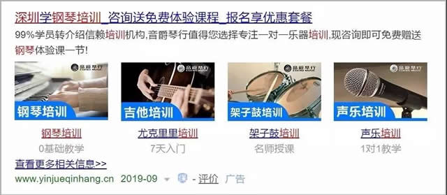 优化前创意没有配图、文案没有营销点,毫无吸引力! 优质的创意主要取决于配图,优质的配图能最直观的让客户产生良好的第一印象,而文案在于是否能直击客户心理,产生点击行为。 比如:免费体验、优惠套餐、一对一培训、免费赠送等等,这些字眼都可以吸引客户点击广告进入我们的网站。 优化后创意展示: