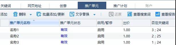 思维型人群理解: 指挥官给管理层(推广单元)的任务是,要充分管理好自己管理层里的每个士兵不与其它单元(管理层)产生关联冲突,就相当于你是A部队,我是B部队,各自有各自的单元部队,后期上线后好各自汇总数据呈现给指挥官,等待指挥官进一步优化指令。 单元设置解读: 推广单元状态(如果违规或不按市场规则来是审核拒绝的) 启用/暂停(如果消费过快或不稳定你可以随时关闭或继续开启投放) 出价(你可以针对管理层下面所有的关键词进行统一出价设置) 否定关键词(排除与该单元不相关的词而触发展示) 后期单元组数据解读: 上线后每个推广单元所产生的数据各一,你会总结出数据有规律存在,28定律(80%的消费或点击或展现会集中在几个单元身上,关键词层级规律也是如此),因此你要对这80%主要数据(推广单元组)做好数据总计和规划。 我们之所以对不同属性特征的关键词进行分类到不同的推广单元组内,后期所产生的数推广软文效果好吗据就可以充分利用单元结构的细分化和清晰化,观察统计到各个单元内整体关键词的数据走向。 推广单元层级所产生的数据,消费、点击、展现、平均点击均价=消费/点击,点击率=点击/展现,对这五个数据指标进行分析与对比统计,为什么这个推广单元组消费占比这么高,其次你会进一步深挖关键词层级,查看数据指标,定位问题。 3、每一个关键词ID相当于是一个士兵