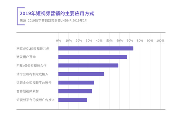 短视频的下半场 更多用户看短视频,更多的短视频平台出现,更多的创作者涌入,更强的营销关注度,在快速发展中短开启了下半场。 展望2019年,短视频会继续成为营销热点,但哪些平台、哪些内容和形式会火?还需观望,品牌主和营销人也应该沉下心思考——短视频的营销价值到底是什么?短视频的营销闭环如何构建? 1.巨头新宠、跨界热门 短视频平台,创作者/MCN机构以及制作工具,更多大玩家、新玩家在2018年进入短视频领域。据不完全统计,2018年仅腾讯一家就推出了十几款短视频平台产品。其他媒体平台也在短视频重点布局,比如微博,一直是短视频分发的主战场之一,正在着力发展Vlog;微信在2018年底升级7.0之后新增了“即刻视频”功能,将社交与短视频强强联合。 在长视频平台上,短视频的播放量也已经非常可观。据爱奇艺公布的数据,截止2018年5月爱奇艺各渠道的播放量中,长短视频已基本持平。长视频平台在发展短视频方面选择了内部放大和外部孵化两条腿走路,比如爱奇艺,平台内的搞笑、资讯、热点、花絮等内容均以短视频主导,并在外部接连上线新的短视频APP。 对于原有以图文创作为主的自媒体来说,是否转战短视频是一个正在面临的选择。视频创作的门槛、新的表达方式、粉丝能否迁移都是需要考虑的问题。据新榜统计,截止2018年底有21.6%的网络营销看法微信500强账号已入驻抖音,其中有接近一半是时事政务类账号,这说明很多泛娱乐类、生活类的自媒体仍在观望,当然这也给新一代自媒体人/机构留出了不小的市场空间。 2.探索短视频新样貌 从媒体的常规发展路径来看,垂直化、多元化将是短视频内容的发展趋势。而在移动大趋势下,竖屏短视频也一定会越来越主流。 新的形式方面,近一两年,国内的Vlog主要活跃在B站和微博上,如前文提到,微博从2018年开始将Vlog作为重点发力方向,一方面挖掘明星/偶像资源,一方面也在大力扶持创作者Vlogger。目前Vlog才还处于起步阶段,它最适合哪类内容,是否能像当年140字符成就Twitter一样,创造出一种新的标准模式,都还有待观望,视频+Vlog是一个炒的比较火得方向,关键是要找到Vlog与特定场景、体验的结合点。 3.小步快跑推进商业化变现 无论媒体还是品牌方,对短视频的商业化推进都很迫切。 2018年,头部的抖音和快手都在商业化上大步前进。6月,抖音开始购物车功能的内测,7月上线星图平台,为品牌主、MCN公司和明星/达人提供内容交易平台。10月快手在各种公测之后正式推出营销平台,主打信息流广告、电商转化、内容生态三个商业化方向。总之,媒体方正努力使流量变现,并推进营销闭环的形成。 营销人同样看重短视频的商业化落地。在调研中,超过七成的被访者表示希望将品牌的、定制视频更多应用在短视频平台。在短视频的营销方式上,与网红/KOL内容共创,激发用户互动、以及与明星/偶像合作成为Top3的选择,这意味着短视频的营销内容将更强调个体视角,并与社交紧密关联。