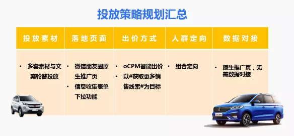 3.CHECK | 智能计算“超级大脑”,优化低成本增量之路 与以往CPM 竞价按曝光出价的方式不同,此次宝骏汽车采用的oCPM智能出价方式更为简便。宝骏汽车只需按照自身需求,设定预期的销售线索转化成本,oCPM这个拥有海量数据、24小时待命的“超级大脑”,就会根据实时投放效果,自动计算与调整出价,建立投放模型,保证销售线索收集成本。 在成本得稳定控制后,宝骏汽车提升每日投放限额,oCPM系统会根据其增量需求,智能向更多潜在高转化率且符合转化成本的消费人群投放广告,帮助宝骏在避免不必要的曝光损耗之外,以低成本收获更多优质曝光和有效销售线索。最终,宝骏汽车不仅收获8500万品牌曝光,整体销售线索收集成本更低于预期20%。 4.ACTION | 沉淀品牌数据资产,精准捕捉潜在客群 在自动投放与持续优化之外,腾讯广告oCPM智能出价系统还可以沉淀投放数据,支持宝骏汽车从广告素材、落地页展现、数据定向选择等多维度进行营销归因分析,不断优化广告投放策略。 另一方面,通过与品牌CRM系统API对接,宝骏汽车得以更及时地跟进通过表单落地页收集的销售线索,促进汽车销量攀升的同时,积累更多有效销售线索数据复用于日后营销投放,不断触达优质潜在客群。 腾讯广告oCPM智能出价系统,通过对投放数据、广告场景与消费人群的深刻洞察与自动管理,让更多汽车品牌得以充分表达自己的营销诉求,依托对自身业务的熟悉,打造更好的创意。精致素材、多维数据与智能优化能力的碰撞,将为汽车品牌释放更多营销价值,收获品牌认知之外,推动汽车销售业绩持续攀升。