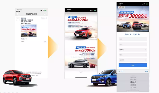 内层落地页简化反馈路径提升转化 一直以来,很多人都因为流程繁琐、耗时长而不愿填写线上表单,这也成为很多汽车品牌收集销售线索的一大“绊脚石”。 此次,宝骏汽车选择使用朋友圈原生推广页作为广告落地页,在全景展现汽车优惠之外,更首次尝试表单下拉功能。简单快捷的操作流程,不仅缩短数据对接路径,更大幅降低消费人群的留资时间成本,优化消费人群的广告体验,直接促进广告转化率的攀升,最终收获有效销售线索6613条,线索有效率高达63%。