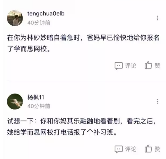 2.“未播剧情”+“星播报”,扩大品牌传播声量 优秀的师资团队是教育机构的核心卖点,简短的贴片广告文案可能不足以具体展现品牌特点,因此学而思网校还通过多种创新的广告形式,全方位凸显品牌优势。 一方面,学而思用“未播剧情”的方式预告了一波姜冠南主演的原生广告,悬念式的内容成功撩拨用户的观看欲,增大了后期正式释放内容的传播力度。其还在广告中巧妙输出学而思网校老师均毕业于哈佛、清华、北大等国内外名校的信息,深度展现了品牌优势及特色。 另一方面,学而思网校邀请到了主演闫妮摄制星播报内容,并于电视剧黄金时段播出。通过闫妮明星家长的加持和背书,给用户安利更多品牌优质师资力量的信息,与电视剧毫无违和感,获得了大众更多的关注和信任。 通过以上多种创意形式的广告植入,学而思网校点燃了观众的购买情绪,实现了深度的种草。 3.优质衍生内容,持续释放话题热度 “成精”的学而思广告不仅注重广告自身内容质量及传播力度,还多次根据热门话题产生优质衍生内容,持续释放话题热度。基于热播剧的流量和关注度,学而思网校趁势发起了#千万不要和学霸一起看剧#的微博话题讨论,创作多幅诙谐幽默、贴合观众偏好的剧场小漫画,并通过话题提问、微博抽奖等方式与网友积极互动。