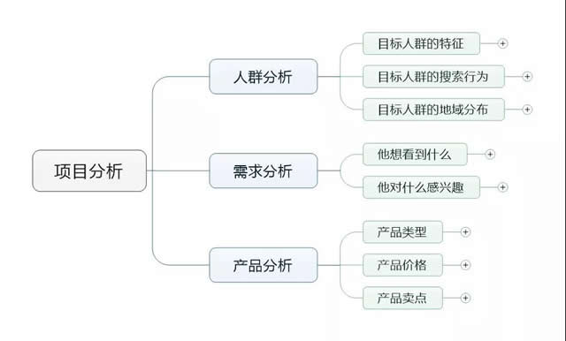 竞价推广归根究底,所有问题的本质来源都是“账户效果”。 所以,小编整理了一套竞价推广流程,希望能帮助到大家。 接下来小编将以“网站建设”这个项目为例,来详细阐述下我从接手到结束都是怎么做的。 第一步:项目分析 在接手这个项目时,我做的第一件事就是对这个项目进行详细的分析。 因为我需要了解: 1、我要展现的人群有哪些? 2、我应该如何让他们看到我? 3、我又应该如何转化这些人群? 这些问题,是进行竞价推广的前提。