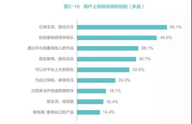 另据调查显示,由于短视频拍摄简单易操作,刺激了大量普通用户的短视频拍摄及上传兴趣,有超过4成的用户有过拍摄并上传短视频的行为,其中有25.1%用户经常拍摄并上传短视频,短视频多维立体的展示形式,成为了一种记录美好生活的新方式。