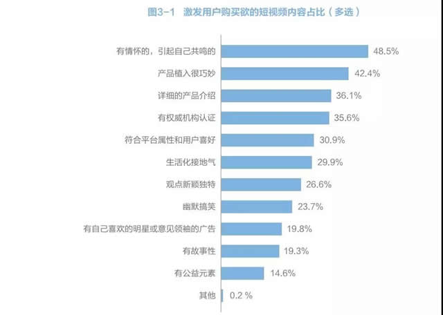 根据《2019年短视频营销白皮书》的用户调查显示,有近六成的用户因为观看短视频内容而产生过消费的行为,这也预示了好的短视频内容是能够带来一定用户消费行为的趋势。 其中一些主打情怀主题的短视频内容,产品植入角度非常巧妙,再通过详细独到的简介,往往能够非常有效地激发出用户的购买欲望。