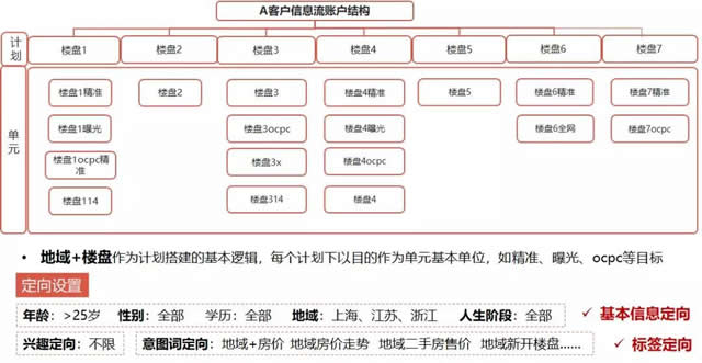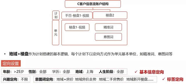 C客户日消费小于500 地域+楼盘作为计划搭建的基本逻辑,每个计划下以定向方式作为单元基本单位,如精准词、意图词等。
