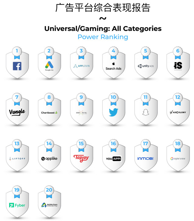 9月25日,AppsFlyer 发布《广告平台综合表现报告第七期》(the AppsFlyer Performance Index Edition VII),报告中列出了 2018 年上半年最优秀的移动媒体渠道的排名。本次报告,AppsFlyer 分析了超过 8000 个应用程序的 145 亿次安装以及 250 亿次打开。 本期报告 AppsFlyer 在保持统计意义的前提下,提供了更细分的数据。 1. 从榜单分类方面讲,本期报告游戏、非游戏应用均提供了分类排名。其中游戏按游戏类型分为休闲、中核 & 策略、博彩游戏。非游戏类应用又分为文化生活、工具、购物三类,此次新增的“购物”类别排名值得关注。 2. 从数据维度方面讲,此次报告新增了“增长指数”,以展示广告平台的成长情况。此外,为促进特定区域中更多媒体渠道绩效展示,引入了“最有前途”排名,从而使营销人员能够尝试更多选择,并进一步优化自身的媒体渠道组合。 3. 从报告覆盖区域方面讲,新增澳大利亚和新西兰地区。报告所覆盖区域由原来西欧、东欧、北美、拉丁美洲、东南亚、日韩、大中华区、南亚(印度)等 8 个,增加为 9 个。