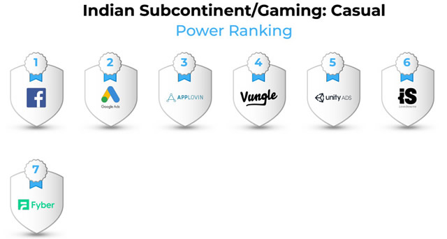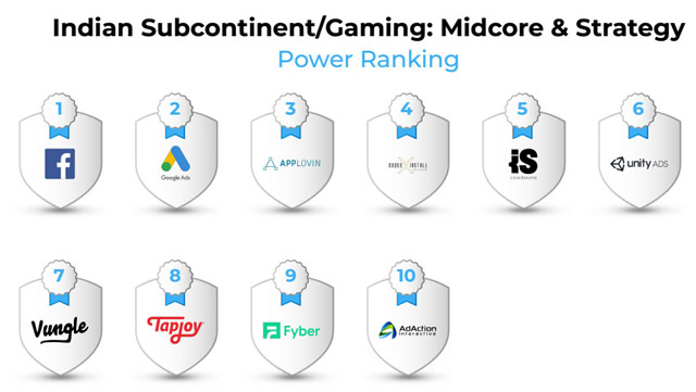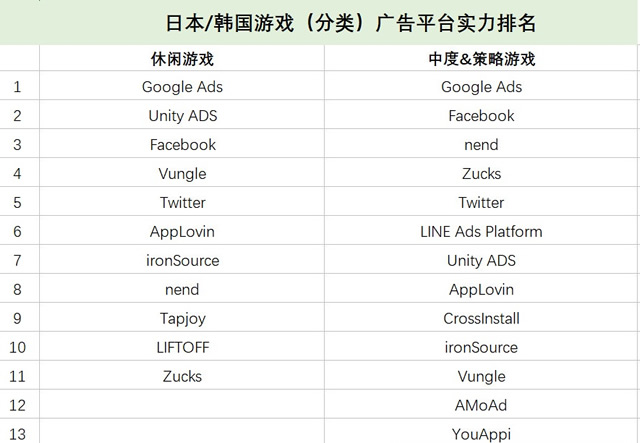 全球游戏(所有类别)广告平台 ROI 表现排名 在近期出海手游广告主最为关注的区域市场,优势渠道都有哪些呢?我们分别来看看日韩和印度游戏广告平台的情况。