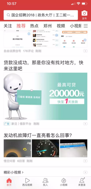 拆解: 1、先说文案里的3个字眼,别墅,23平米,公寓,当我们在浏览一闪而过的时候,会优先抓取这三个词汇,根据对这三个词的理解,首先我们映入脑海的是别墅,就算其实是在卖应对报媒体的危机公关方案公寓,但用户没有过多的时间思考停留; 2、其次,别墅和公寓本身是 不同的受众,并在一起是违背了大众的普遍认知; 3、文案的反问语气“不知道开发商怎么想的”是有 负面情绪 在里面,对用户的情绪有潜在的引导作用,这是我们做广告不可取的; 4、最后是落地页承接问题,跟外层文案衔接不够,未能解决文案中提出的问题,流失较多,且落地页核心主题不够突出,优化空间较大。 总结:外层文案违背大众认知,抛出了一个罕见的话题,点击率较高;落地页未能有效承接,流失较高;整体来说,转化率让人担忧。 以上案例拆解出现的问题,大家要尽量避免。 案例二:金融借贷对比案例 投放平台:今日头条 广告主:新旦,人人贷 创意层面对比: 新旦: