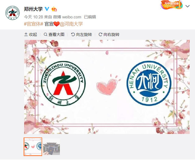 微博上官宣体炸了 连大学都来凑热闹了! 武汉大学 @武汉大学:#官宣体# 官宣[@华中科技大学 @华中科技大学:#官宣体# 官宣@武汉大学