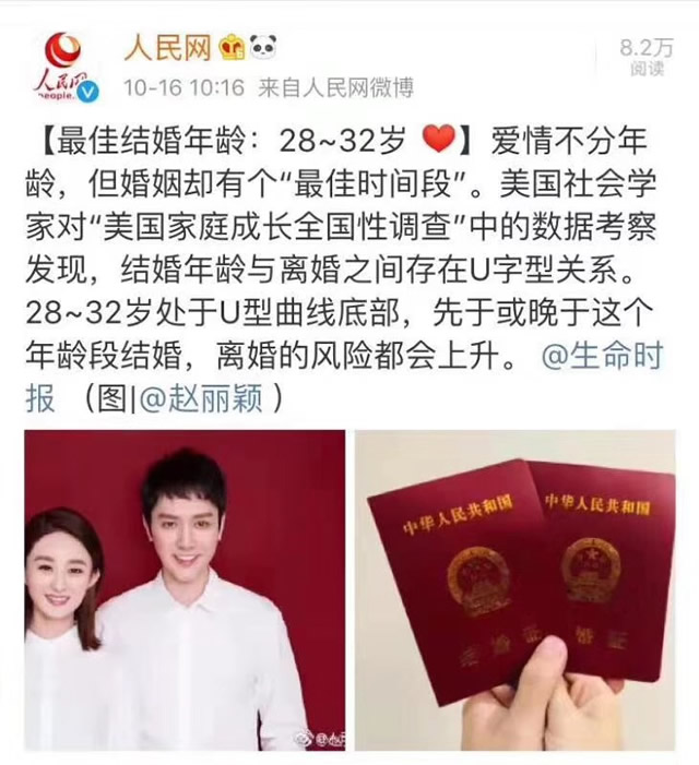 关键词:赵丽颖冯绍峰结婚微博热