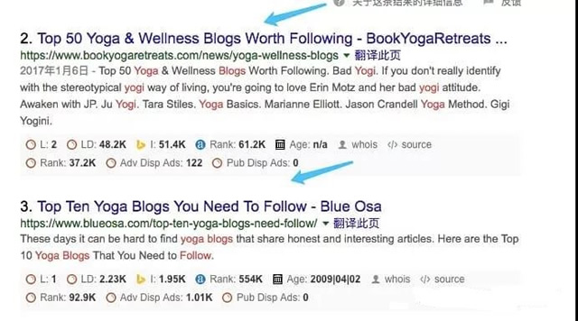 通常,你可以从中得到大量的关键词和topic建议! 当然,随便点击一个相关的内部链接,重复上面的步骤,可依次得到更多。 4、巧用搜索指令找高质量的相关博客汇总 高质量、相关性强的博客外链对于关键词排名的影响甚大。那么,如何找到这些博客文章呢? 小編给大家汇总了以下几种搜索指令: 1.“[keyword] blogs to follow” 2.“best [keyword] posts 2018” 3.“top [keyword] blogs to follow” + “2018” 比如,我在谷歌中搜索[yoga] blogs to follow,然后得到了下面这些搜索结果: