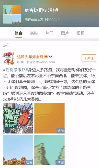 整个短片呆萌可爱,剧情上也脑洞大开,令人印象深刻。 如今人们的生活,地图已经成了必不可少的工具。包括地图导航、地点定位、行车探路、周边查询、打车服务已经公交路线,地图俨然成为了一个拥有众多入口的综合平台。 百度地图通过升级既有系统,在产品层面给用户提供更准确、更方便、更丰富易用的服务,提升用户体验。而为了让用户更好哪家制作宣传片好的理解这些新功能、新服务,百度地图采用轻松有趣、充满戏剧品牌 公关化的短片,直观地向大众传达“智能”利益点。 一支短片不够,他们还联合微博大V发起#活捉睁眼虾#话题,与四十余个微博蓝V联合,发起粉丝互动,持续发酵,短短五天,阅读近千万。
