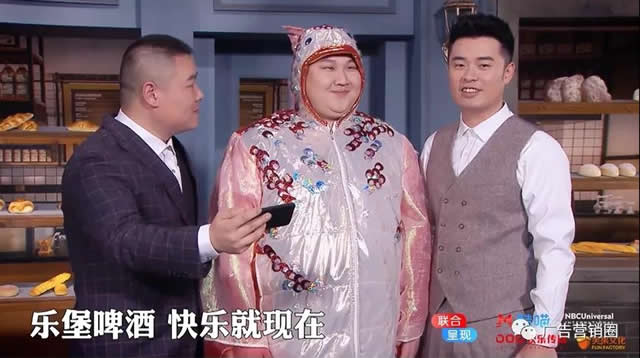 具体营销实践上,年轻态喜剧网综也不断用新创意解锁“新姿势”。首先,在节目口播上,自带互联网基因的广告语极富网感,如《吐槽大会》中的vivo手机“前置双摄自拍,吐槽吐得更嗨”“vivo双镜头自拍,美到无法吐槽”等。近期热播的《周六夜现场》中,小鹏汽车“自动泊车黑科技,一键入位不费力”以及乐堡啤酒“乐堡拉开,快乐就现在”等口播不仅与节目轻松、娱乐的调性相匹配,而且为品牌打上了互联网语境的底色,文风俏皮打趣,符合年轻人的话语喜好,有利于品牌在话语层面触碰年轻文化,并与之建立沟通。