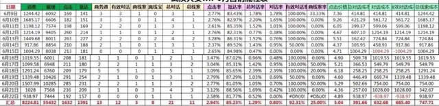 再看下图,是数据对比后的截图。我们可以轻易看出6.16-6.22与6.9-6.15之间的数据变动,发现其问题。