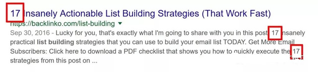 花了大把钱,大把时间苦苦经营的外贸网站。却谷歌排名上不去?没流量?没转化?很苦恼?很无奈?没关系,试下这2O个超有用的SEO技巧!! 1、根据RankBrain算法来优化网站 谷歌宣布,继内容和链接后,谷歌人工智能算法RankBrain成为影响谷歌排名的第三大因素,并且,RankBrain 正变得日益重要。 (大家若想要了解更多的RankBrain,请自行查阅资料,当然,后面也可能会出对应的文章。)今天只讲如何针对RankBrain来优化我们的外贸网站。 环新推荐给大家两个简单又易于实现的小技巧: 1) 提高点击率 Google RankBrain 通过网站在谷歌搜索结果中的点击率来判断用户的喜爱并进行排名,用户爱则前置,厌则弃之! 提高点击率? How?? a.你可以在Title和Description中添加一些数字(研究表明,人们更倾向于点击带有数字的内容),比如: