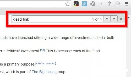 这个死链在被更新或被删除之前,则是我们的宝贵时间。 步骤: a.在谷歌利用此搜索指令进行搜索:site:wikipedia.org [keyword] +“dead link” b.访问与你的网站相关的搜索结果页面(维基百科页面) c.按“ctrl + f ”(Mac是command+f)在对应的维基百科页面内搜索“dead link”,