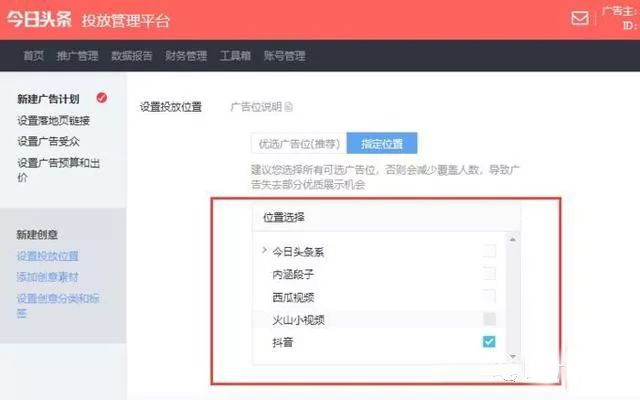 抖音广告是一种向90后并且是一二线城市年轻人展现的短视频广告,理由不多说,年轻的90后用户活跃、开放、有消费需求和能力。 如果你想做抖音广告,你可以选择的主要方式有两种: 1、选择平台做付费广告 2、选择抖音红人合作做广告 在平台上做付费广告 抖音投放广告是在今日头条后台上,收费模式,价格及广告精准定向是跟今日头条一致的,只需要开通今日头条广告,在广告后台自己设置投放就行: