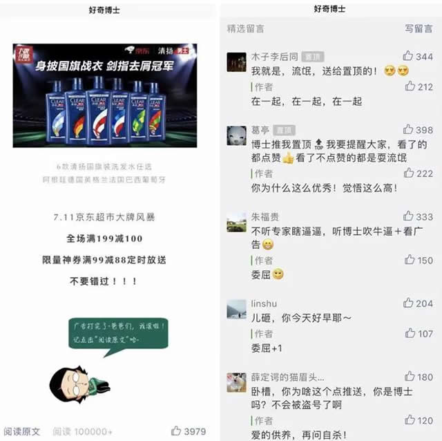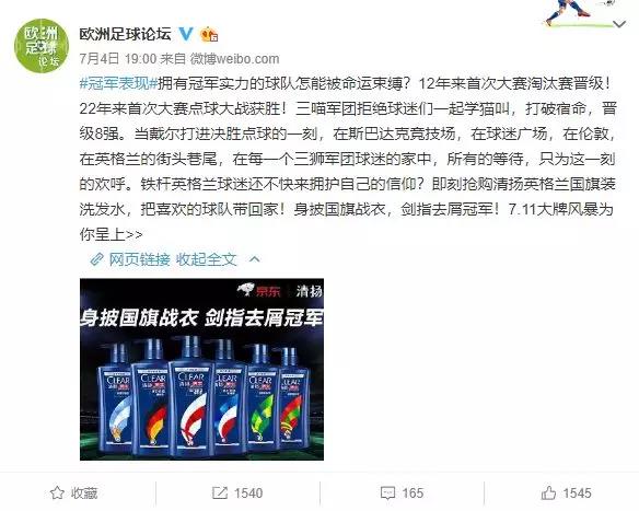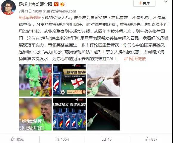 几乎每一场世界杯的比赛都能在微博上掀起一阵讨论的热潮,就像梅西和C罗双双回家不仅霸占了社交平台的大半流量,同时也涌现了无数的梗。 对于品牌主们来说,每一次话题的爆发也是一场营销的大战。在世界杯的话题层出不穷的时间段里,在营销手段不断迭代的时代里,如何做出一场差异化的营销,如何真正get到用户们内心的情感共鸣点是各大品牌主们都在思考的问题,同时也是决定一个营销案例能否获得成功的关键。 2018世界杯期间,京东联合清扬、纯悦、哈尔滨/百威、雅培、可口可乐、好奇、雷达等品牌,掀起7.11大牌风暴,用话题连接产品,再用产品助推品牌的方式,顺利撬动了用户对于品牌的好感,将用户的关注度转化为了购买力,打造了一场世界杯的“差异化营销”案例。下面就来和007看看,清扬&京东是如何玩转世界杯营销的。 1、借势世界杯热度,推出国旗产品契合品牌特质 在高热度的话题当中,品牌主们的营销往往借力打力,借势话题热度顺势推出一些与主话题相关的品牌话题,并从中植入产品信息,这样的方式最为常见。但是东西听多了,消费者会觉得厌烦,毕竟脱离产品和品牌的硬广植入往往会导致沟通成本上升,难以真正达到营销的传播效果。 在京东和清扬7.11大牌风暴的营销案例之中,则巧妙地以“世界杯”热门话题为点,从微博话题当中挖掘用户的情感共鸣点,以产品为载体触发用户内心的认同。在此案例之中,京东和清扬充分考量了品牌在世界杯期间“冠军时刻,冠军态度”的主张以及C罗代言为用户留下的深刻印象,顺势推广了以各个世界杯国家国旗为包装的产品,将产品的物质属性连接到精神情感,以此打动用户。