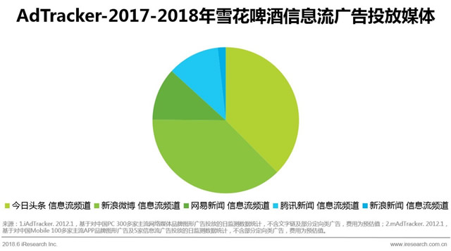 在信息流广告的投放规模方面,青岛啤酒和雪花啤酒相差不大,而在媒体选择上各有喜好。青岛啤酒在一点资讯、网易新闻上的广告投入最多,雪花啤酒倾向于、新浪微博,双方在前两位媒体上的投放规模则相差无几。另外,二者也有不一样的选择。青岛啤酒也在凤凰新闻上投放了部分信息流广告,雪花啤酒放在了腾讯新闻。 在信息流广告投放的趋势上,青岛啤酒和雪花啤酒有很大不同。青岛啤酒有2次投放高峰,其中2018年3月投放量暴增,可能与春节欢聚的节日氛围有关。雪花啤酒在信息流广告方面表现平稳,有阶段性小幅增长。