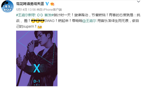 雪花啤酒作为后起之秀,年轻的基因不断为品牌持续灌注新鲜血液。“畅想成长”的主题为品牌吸引了大量忠实粉丝。近期与新生代偶像王嘉尔携手,呐喊“勇闯天涯,生而无畏”,在社交媒体尽情表达品牌语言,激发网民一起甩掉标签束缚,勇敢做自己。官微更是与代言人高频互动,借势支持街舞的热血精神,并为王嘉尔全新单曲发声助威,疯狂打call的行为十分可爱。