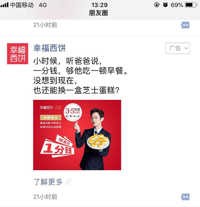 品牌蛋糕选择微信朋友圈推广的效果是一个不错的选择,如果您对有兴趣可以试试哦!