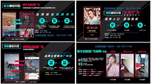 抖音不同广告形式 最后,你必须将自己的广告目的划分清楚。比如,你要做新产品的广告,目的是“刷新”消费者的认知,那就要倾向大范围去找到你的目标消费者,达到告知的作用;要是需要对产品进行收割,那广告的目的就是消费者产生需求,这就要求直接找到有购买需求、有购买能力的用户,直接促成成交。除了在内容上大费周章,还需要探索广告平台背后的算法。因为算法决定了用户最终会看到什么样的广告。比如谷歌的推荐系统,是基于用户的搜索行为,包括搜索记录来推算的,当用户有了意图,有了想买的东西,谷歌就会开始行动,把用户想要购买的商品推给你,直接促成购买。但Facebook就不一样,它获取的是用户的社交信息,比如性别、职业以及在平台上的点赞和留言,以此来判定“你是什么人”,“你会需要什么”,它会把你可能需要的所有东西都推给你。 所以你看,当你决定你的广告目的是促成成交,那就得选谷歌,因为谷歌的算法能让掏钱的消费者找到你,而Facebook是让你找到那些你想要的目标消费者。 以上就是对于在新兴流量平台投广告的四点看法。 别让平台的巨大流量“冲昏”你的大脑,一分心思一分收获,火的东西不一定经得起火候的考验。