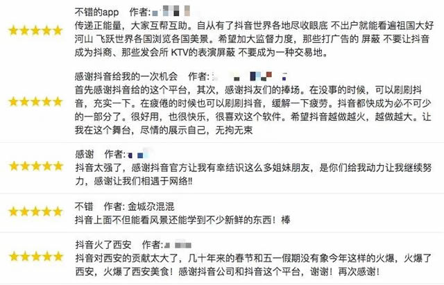 以上数据来源于酷传 反观抖音,在iOS上近1个月收到148050份评价(数据来源于酷传),其中大部分都是好评: