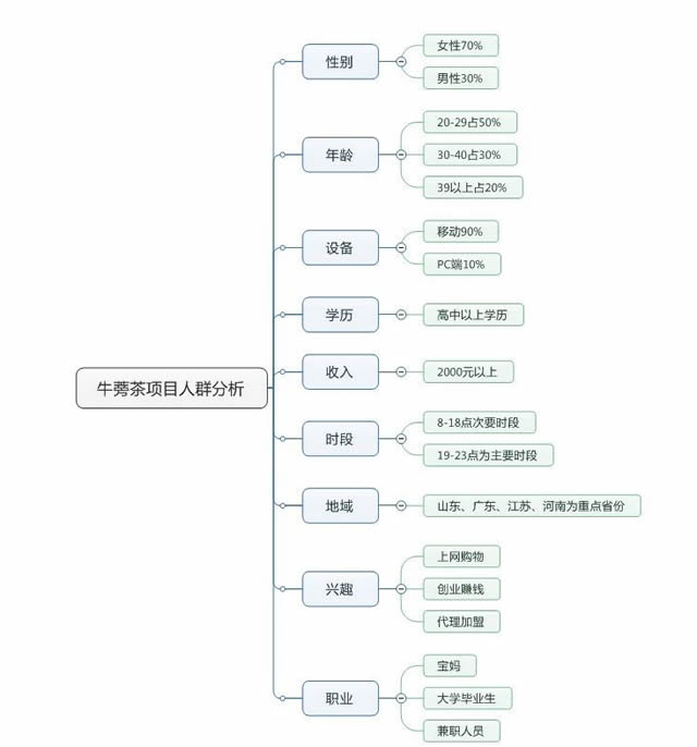友情提醒:此文章较为适合新手或缺乏竞价思维的人群,建议可细读。至于竞价老鸟,你们开心就好。 接下来,小编会告诉大家,如何在短短一个月,账户的加粉量从20左右提升到100左右,加粉成本从33元左右降到20左右! 项目分析 项目分析是每名竞价员都无法免俗的。 我们只有先掌握情况、明确方向,才能有针对性地进行推广、优化。我觉得若把竞价看做战场,那项目分析便是告诉我们制作什么样的工具以及制作工具的材料。 1、人群分析 根据人群9要素,我首先对该产品做了如下分析: