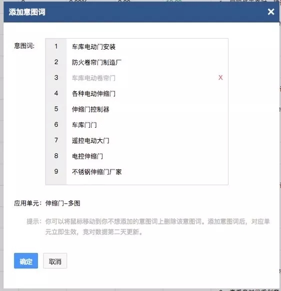 模型根据当前和竞对的差距,给出跟进出价的建议,点击可以直接修改该单元出价,修改后立即生效,但是竞对数据第二天更新。 ①添加意图词