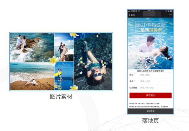 1)细分行业:本地婚纱行业 投放目的:在直接获取客资线索、促成订单转化的基础上,扩大自身品牌知名度。 优化策略:宽定向拓展受众;精致优美的画面设计+简洁有效的落地页形式。 投放效果:客资成本50元;单支广告每日客咨量15人。 2)游戏客户