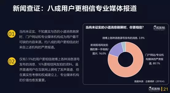 有价值的注意力才是流量中的奢侈品 对传统媒体而言,“三审三校”、新闻采编与经营分离、坚持准确和权威是立身之本;但在长尾自媒体浪潮侵袭、内容创业前赴后继、算法当道、标题党横飞的当下,新闻守门人角色不仅被新技术和竞争力量所威胁,而且可能也被它所服务的受众所动摇,我们离新闻真相越来越远,以至于深度报道和新闻调查正在成为稀缺品。 1685年,法国学者贝耶曾写道:“我们有理由恐惧,每日以庞大数量不断增长的书籍,会让未来的几个世纪陷入一个野蛮的情况,就像是罗马帝国灭亡后的数世纪一样。”几百年后,PC和移动互游戏运营电商运营联网的快速迭代,海量新闻资讯的充斥,让贝耶困境变的更加现实逼仄。 其实,真正让我们对信息爆炸和过载产生焦虑的,不是信息太多,因为这个问题在数百年前贝耶的时代就已存在,而是信息过滤失败所致、是缺乏能够吸引有价值注意力的可信赖内容所致——现实是太多的低价值内容产生了大量的垃圾流量,消耗了用户大量的时间,以至于有价值的注意力成了流量中的奢侈品。 有价值注意力战争 腾讯新闻的打法 无论是资讯内容提供平台,或是品牌广告主,一直都在追逐流量的战场上竞逐,而腾讯新闻价值共赢峰会的召开,则显示腾讯新闻有意将竞争拉升到新的维度,即对有价值深度、准确内容和有价值注意力人群的竞争上来。 在为用户提供有价值的内容、消除信息冗余、节省时间方面,腾讯新闻的做法是技术分发+编辑团队并存的优化策略,通过图文和视频立体化、时间轴梳理、多元化角度等方面的报道,提升信息浓度,使用户端的屏内资讯更丰富、垂直和细分。 同时,在深度报道能久营销策划、原创出品、新闻查证、新闻辟谣等方面腾讯也投入巨大,尤其是在很多传统媒体都在削减采编队伍,甚至去掉了深度报道部的当下,腾讯却还在反其道而行之的加强深度报道团队,难能可贵行为背后的初衷就是为有价值注意力人群精挑细选最有价值的新闻资讯内容,还原新闻现场、拓展视野和刺破信息茧房。 据悉,多年来腾讯新闻提出并践行事实派报道理念,就是为了在客观、深度、多维、准确的前提下,带给读者更多可感知、可信赖的高价值内容:无论是刚需的强资讯新闻,还是消费性和娱乐性为主的泛阅读资讯。这也意味着腾讯新闻在追逐高价值注意力人群上的内容差异化竞争力已然形成。 专业媒体才能为品牌赚取广告信任度 有价值注意力对媒体平台而言,为什么重要?因为用户对内容好坏评判的敏感度增强了,用户的认知和辨别能力提升了,而且变得更加挑剔。用户对新的叙事方式和生产主体,从过去单纯好奇式的新鲜型消费,正在过渡为审慎式的理性消费。 企鹅智酷发布的《2018中国媒体价值报告》显示,在经历过自媒体浪潮的新鲜周期后,明确表示更信赖机构媒体的网民,是信赖自媒体网民的3倍;而当发生一个重大事件时,更相信门户网站和专业机构媒体报道的网民比例,更是上涨到80%——而在同样的情况下,相信社交网络上信息的网民,比例仅为3.9%。