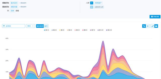 了解信息覆盖后,我们再看看信息的转化,这是信息传播的后半部分同时也是至关重要的一部分。用户在使用一个产品时,有什么因素会促成用户的主动传播?换句话说传播因子有哪些?基于马斯洛需求层次理论的第三层至第五层(社交需要、尊重需要和自我实现需要),抽象整理出4个传播因子:喜爱、互惠、满足、大爱。 喜爱,打造用户喜爱的产品,“绝地求生”游戏一经问世,瞬间成为游戏界的后起之秀,在游戏玩家间疯狂地传播,甚至吸引了大量之前不玩游戏的用户,短期就占领了游戏界的半壁江山,英雄联盟、王者荣耀已没有了往日的风头; 互惠,通过分享产品既可以给分享者带来好处,同时也能为被分享者带来利益,比如滴滴优惠券,饿了么美食券,或者冲顶大会、芝士超人分享邀请后可得答题的邀请码; 满足,通过传播获得关注或认可带来的满足感,比如keep运动排行榜,薄荷阅读坚持打榜天数,还有前段时间吸引各大广告商的微信小程序——跳一跳,通过游戏结果的分享可以邀请好友挑战,这也会产生一种攀比的心理,让互动性更强; 大爱,去年腾讯公益发起的一场公益活动“小朋友画廊”,将筹集的善款用来帮助智力障碍的特殊人群融入社会。用户只要付一元钱,就可以通过分享的方式,将自己献爱心的行为晒出来,既有意义也可以吸引朋友的参与,传递出“很低的成本就能帮助到需要帮助的人”这一信息。 为了量化信息在实际社交传播中的效果,我们想知道怎样的产品属于用户喜爱的范畴?用户在什么场景下愿意去分享?……结合大数据分析工具易观方推广软文的平台舟我们能从用户留存、转化等多种分析模型入手(留存可用来衡量产品对用户的价值,通过分析用户对产品的参与度/活跃度可以看出用户是否喜欢使用产品;漏斗能将用户在产品中的使用步骤进行串联,监控用户在各个层级的转化)。 某段时间内新增用户近30日留存分析