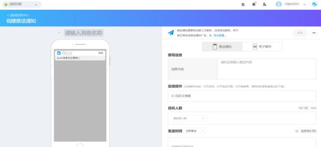 在说信息的覆盖以及触达后的转化时,不可忽视的一点是:如何增强信息的有效触达?为了让用户在特定的时间点收到他感兴趣的消息,比如某视频网站会员即将到期,可以及时提醒用户续费;微博用户允许在使用期间获取LBS定位后,当检测到用户来到不同城市时会推送当地热点资讯……用户触达常用的方式有APP推送、邮件和短信;易观方舟目前已支持个推、极光、百度等多种应用内推送工具,以及通过配置邮件通知用户。 消息推送配置