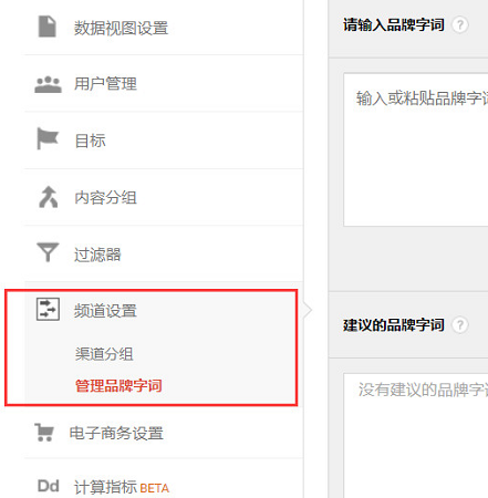4.付费品牌搜索渠道的受众特征 与第三条中的报告的项目类似,都是GA中,所以能够看到的报告种类是类似的,不同的地方在于其高级细分的建立。 使用该方法,我们的高级细分条件为:渠道=付费品牌搜索,且在此之前,我们还需要在数据视图中,将我们的品牌自此添加进去,具体路径为:视图的频道设置>管理品牌字词。