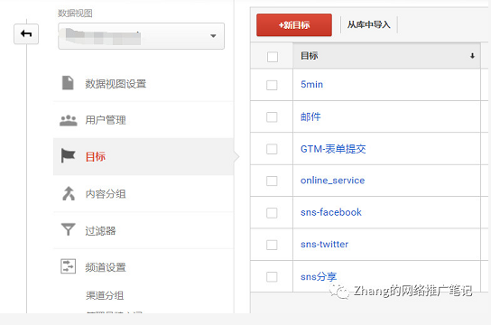 5.满足特定条件的转化的受众群体 其实第3,第4也可以归类为该类,但本条讲除了品牌词意外的其他目标,比如到达某个页面,点击某个链接,完成某项下载等等,而要将其设置为高级细分,我们则需要先将其添加为目标。 在账户管理中的目标中,将我们需要完成的操作添加为目标。