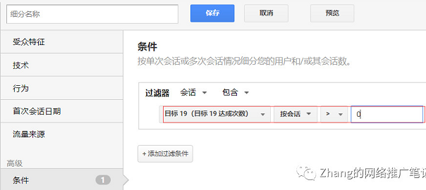 新建高级细分,条件为某目标达成次数>0,这样我们就可以查看该细分的受众群体报告了,具体的报告内容,同第三步第四步中的内容。
