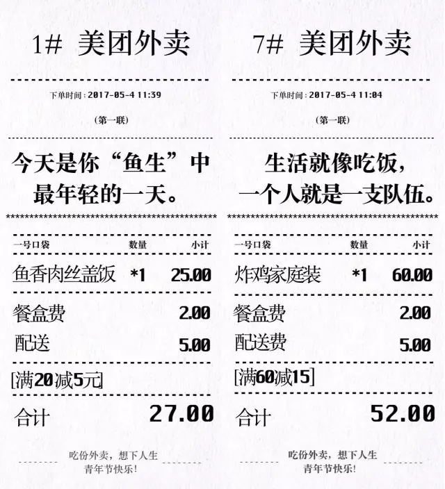 美团外卖:吃份外卖,想下人生。