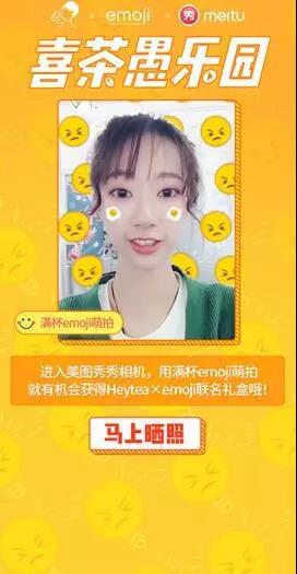 套头挑战 如果这些都不能激发你的分享欲望,那不妨试试美图秀秀专门为喜茶emoji表情定制的AR滤镜特效。它不仅能让消费者玩转表情包,还能在愚人节期间,让消费者美得“愚”众不同。