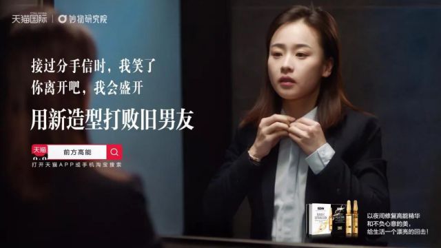 不想安于现状,和父辈一样,守着一套房子过一辈子,与父精准化营销母抗争,也是在跟自己的命运较量…… 视频文案很燃,每一个在城市坚守阵地,独自打拼的女性都应该看看。 “你说,我看不清未来,改变现状似乎成了无底洞,最后剩下狼狈不堪的模样。生活竟是理想与现实的对峙,但这只是你以为。你以为我会在原地迷失,你以为我看不到未来,你以为我和这个城市格格不入。其实脚下的路我比谁都清楚,其实我早已学会与世界相处,其实我想要的就是现在。未来有多美我不知道,美会更有未来,我确定。每一个好看的未来,都始于不被看好的现在。以美回击生活。” 成年人的生活从来没有容易二字,谁不是在努力中坚定,在焦虑中成长。 视频中的三个女孩面临的境况非常具有代表性,刚毕业与男朋友分手;加班的时候工作与生活不能同时兼顾;父母意志与自身想法的碰撞。 在这样的窘境中,这些女孩们不仅没有被打倒,反而给了生活一剂漂亮的回击。 生活难免不如意,活出自己的精彩才顺心,倦了,好好睡一觉;哭了,仔细洗把脸;涂上精华液,你还是那个光彩熠熠的自己。 这是现代女性的生活美学,也是品牌面向消费者的一个情感沟通点。 天猫国际妙物研究所联合全球高能精华品牌,将职场女性在生活中用以抵御负面情绪的勇气嫁接到品牌理念上,喊出了“以美回击生活”的口号。 “接过分手信时,我笑了。你离开吧,我会盛开。用新造型打败旧男友。”