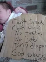 不会说话,无法行走; 没有牙齿,没有工作; 尿布很脏,生死靠天;