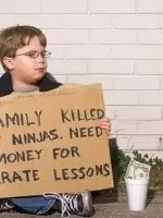 家人被忍者杀害了, 需要钱学习空手道复仇。