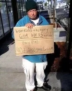 无家可归,肚子饿, 接受paypal捐款:40dude.com。